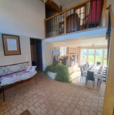 La Maison Belle Vue est idéale pour les familles qui souhaitent se retrouver et partager des bons moments dans un endroit calme et chaleureux. Le grand séjour de 80m2 sur deux niveaux dispose, d'un espace télé, d'un salon et d'un espace salle à manger modulable.